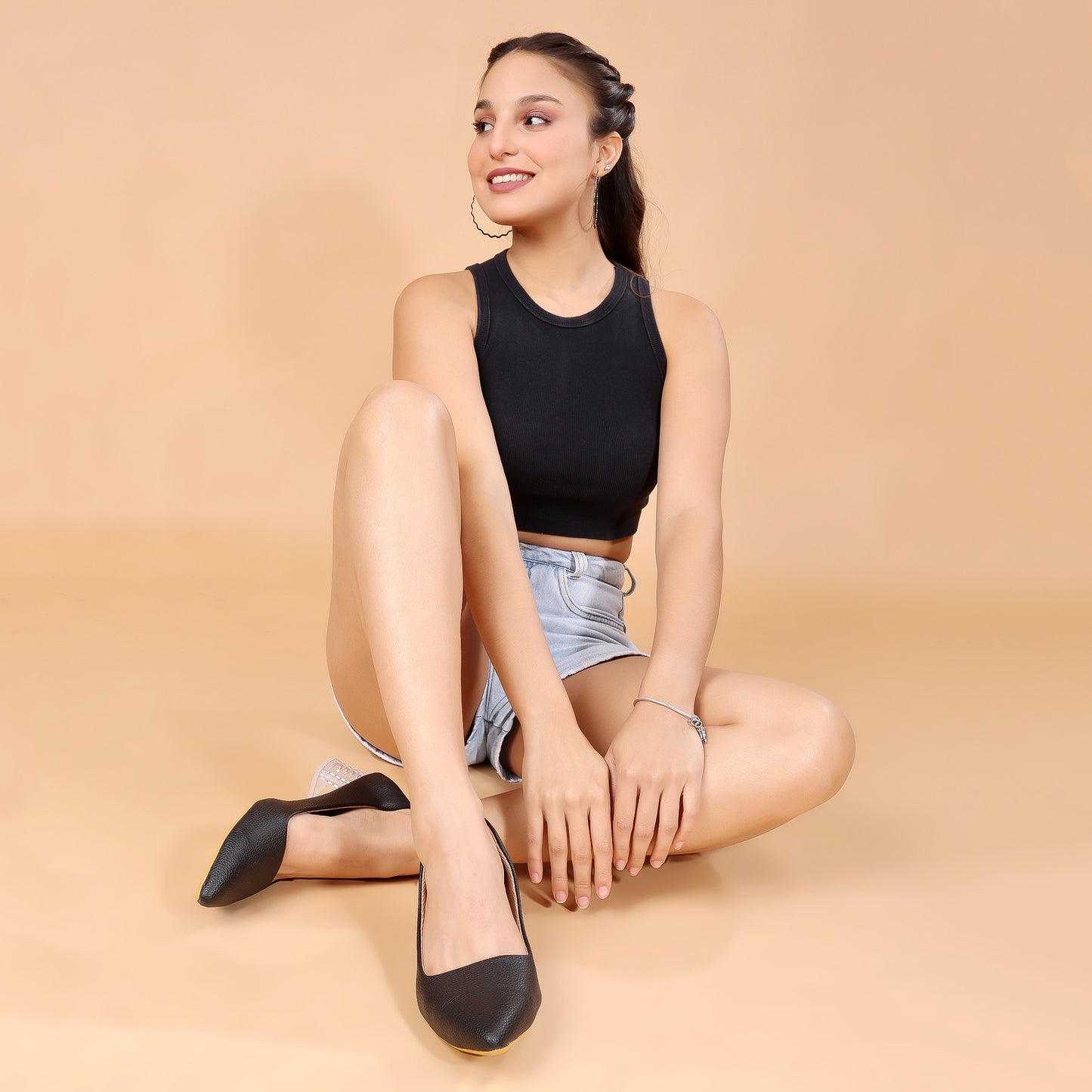 Step into comfort and style with our elegant black ballet flats, perfect for everyday wear and special occasions. Our premium collection offers unmatched support and cushioning, keeping your feet feeling fresh and comfortable all day long. With breathable, soft interiors and cushioned soles, these shoes are a must-have for any fashion enthusiast. Whether you're running errands or attending a formal event, our black ballet flats are the perfect choice.